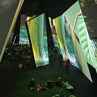 I am a bit torn about this exhibition, due to the size of the building and all the adverts I saw I thought there was more to the exhibition than what there is. It is essentially one really large room with a couple of break out rooms. The main room has huge screens located throughout the room and visitors can sit either on bean bags, the floor, or on some seating around the edge of the room. The exhibition runs the theme of the seven continents and shows footage of wildlife from each continent. Due to the screens being all around you and David Attenborough's voice playing throughout the experience, if you are able to you could sit down to watch the experience and get a bit lost in it.